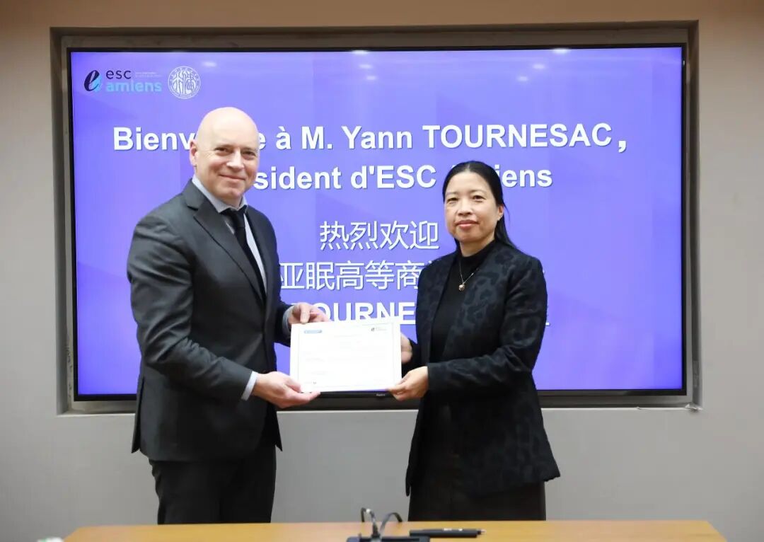 此次法方校长来访的一项特殊使命是递交由亚眠高商和亚眠工商会共同签发的电子商务专业教学标准认证证书。