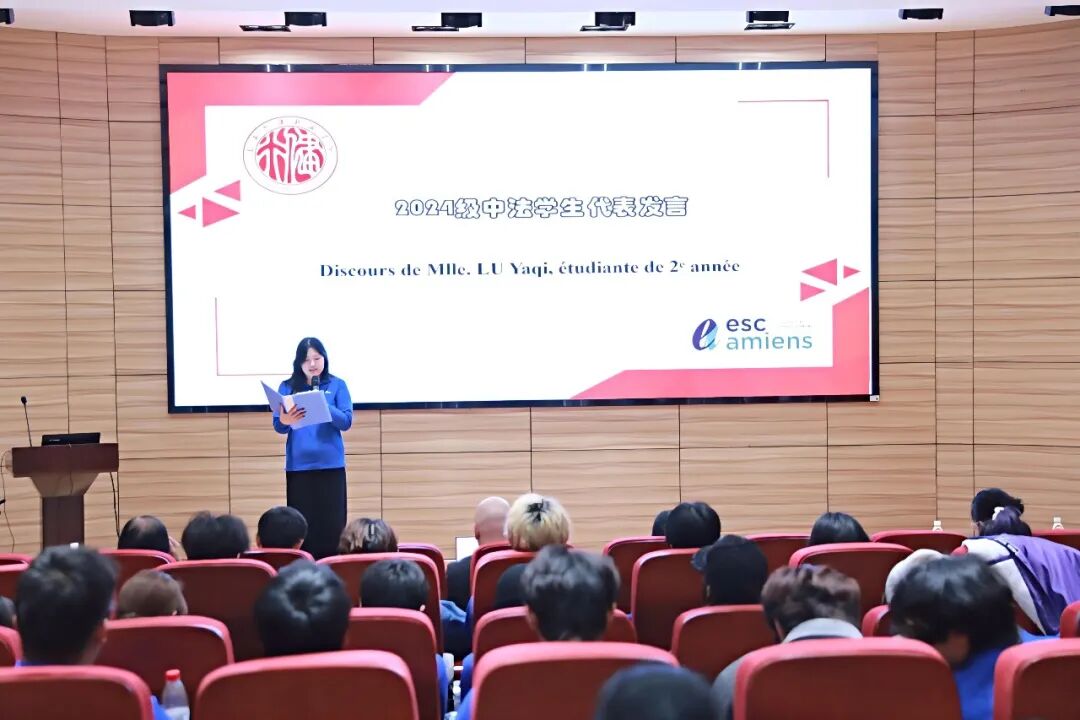 亚眠高商校长杜勒沙先生在章卫芳校长的陪同下,共同参加2025级工商企业管理(中法合作)专业新生开学典礼。章校长在致辞中对亚眠高商校长一行的到来表示热烈欢迎,并高度评价了两校在教育领域的合作成果,对2025级中法专业新生提出了殷切期望。已经留法深造的2023级学生通过视频分享了他们在法国的学习与生活体验,2024级学生代表和25级新生代表也分别发言,表达了对未来学习生活的期待与憧憬。